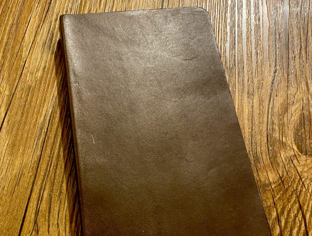 ↑いい表情をしてるでしょ。アンティークな雰囲気のノートにピッタリな栃木レザー