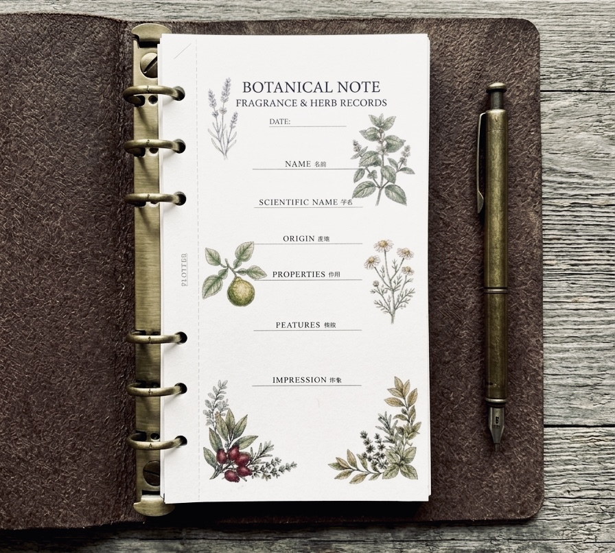この手帳と一緒に楽しむハーブティーのブレンドや、香りのブレンド